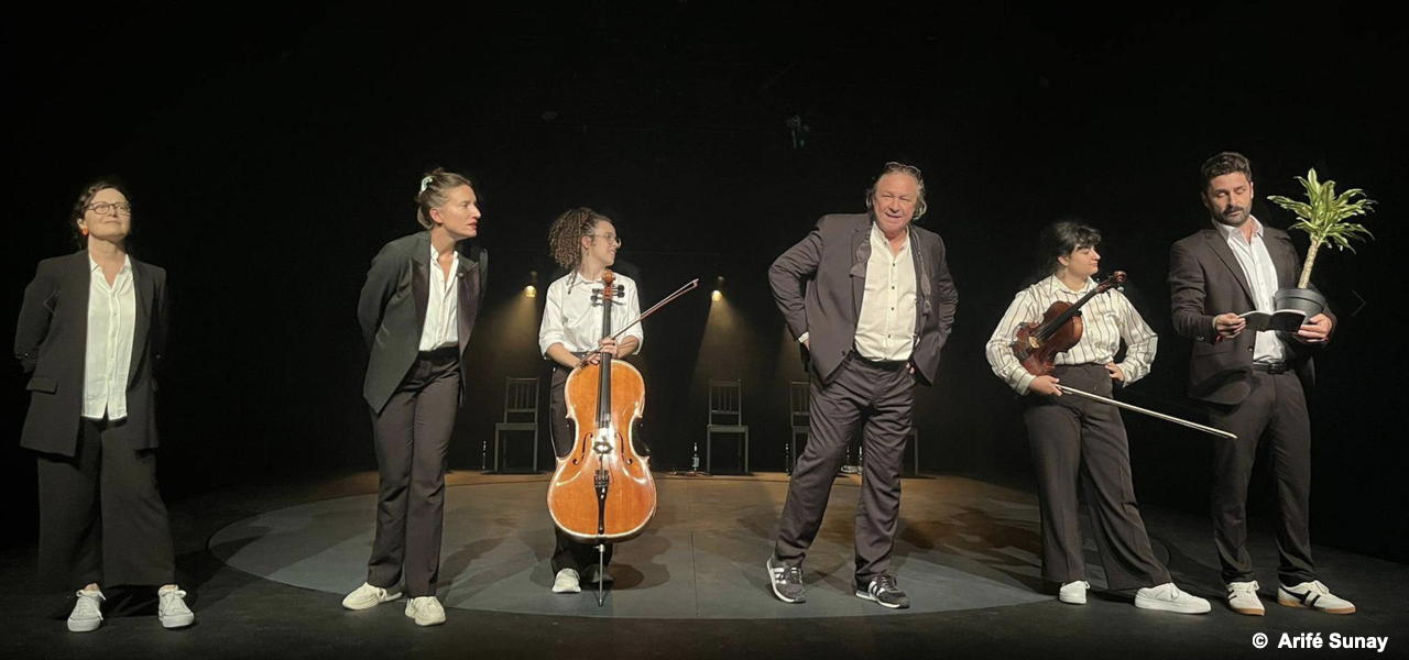 Portée sur scène par quatre interprètes de trente à cinquante ans, dont la fougue contraste avec l’âge réel des personnages, cette pièce questionne l’amour, dans un carnaval philosophique comique et sentimental, drôle autant qu’absurde, qu’un accompagnement musical à l’alto et au violoncelle vient sublimer.